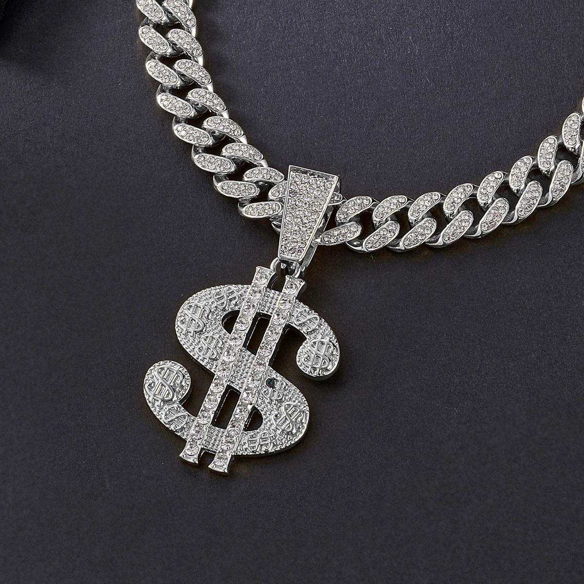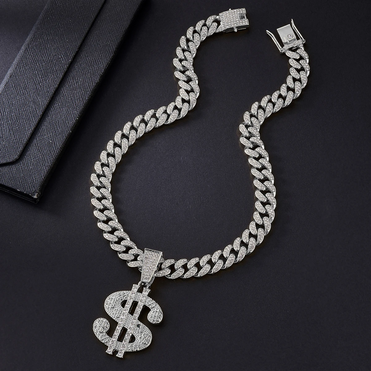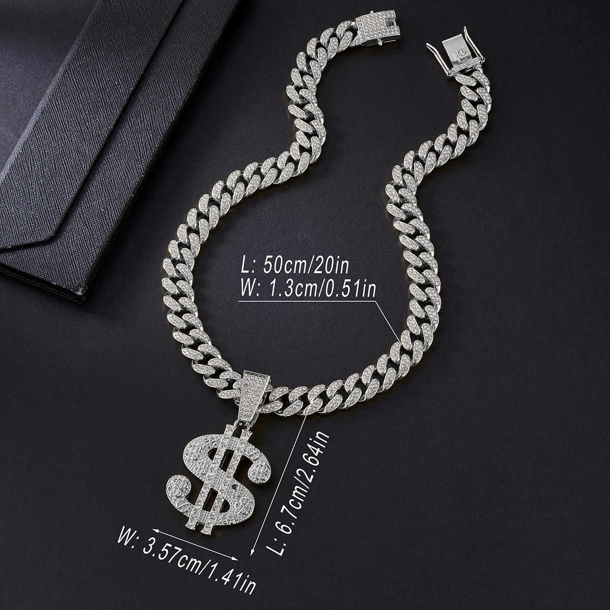 1PCS Golden/Silvery Chain for Men with Dollar Sign Pendant Necklace Hip Hop Dollar Necklace