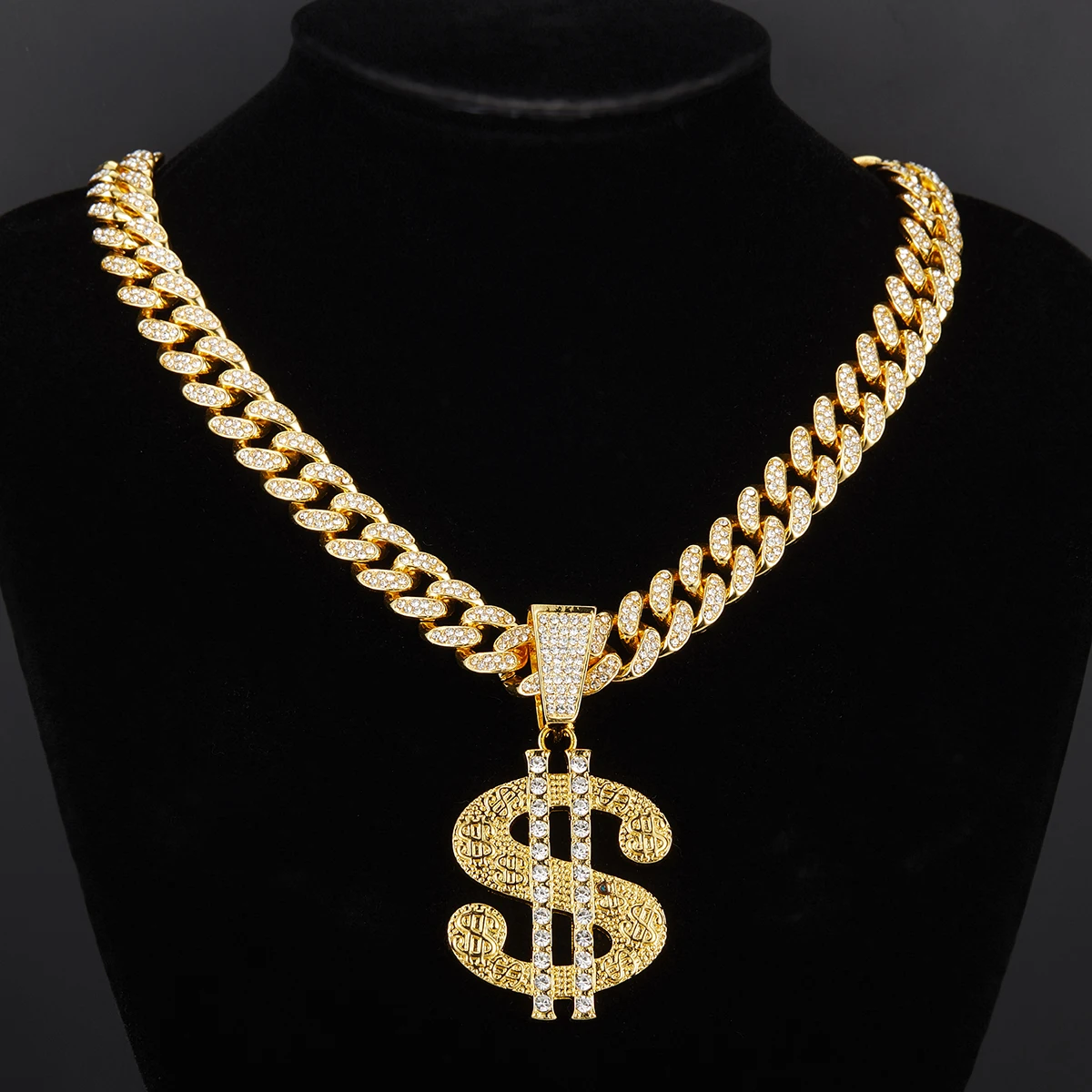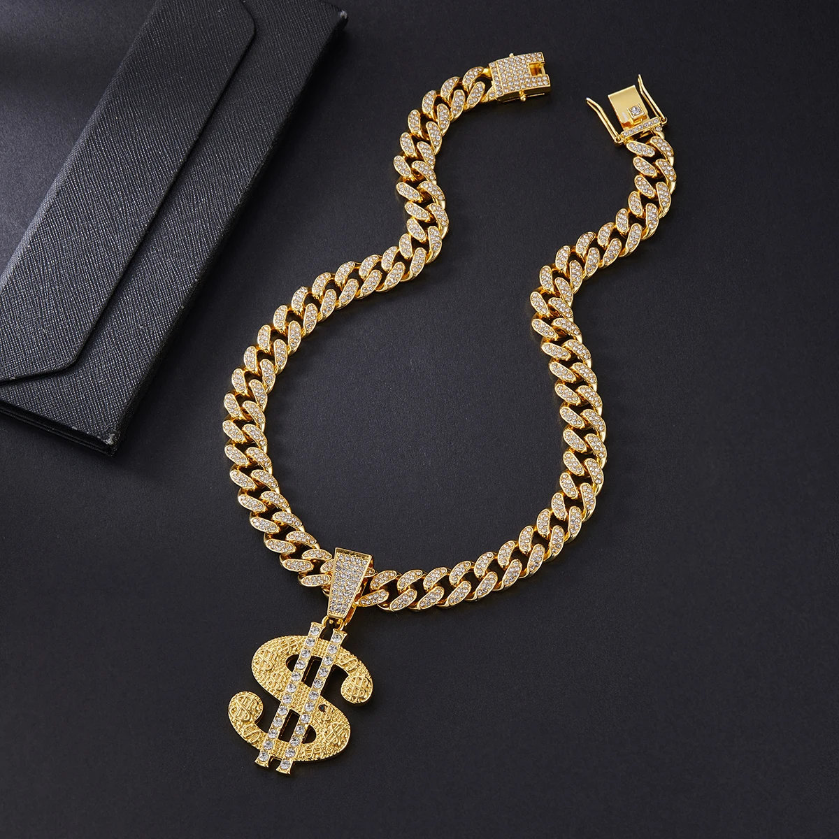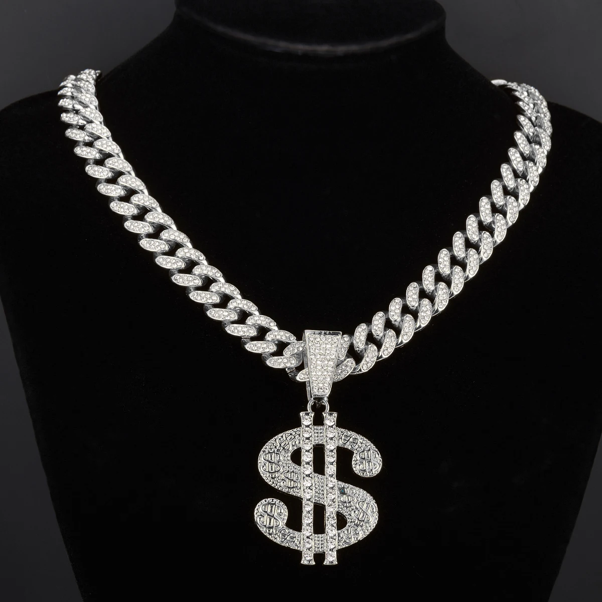 1PCS Golden/Silvery Chain for Men with Dollar Sign Pendant Necklace Hip Hop Dollar Necklace