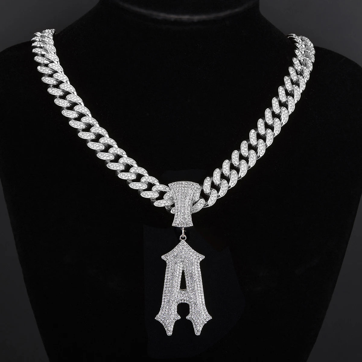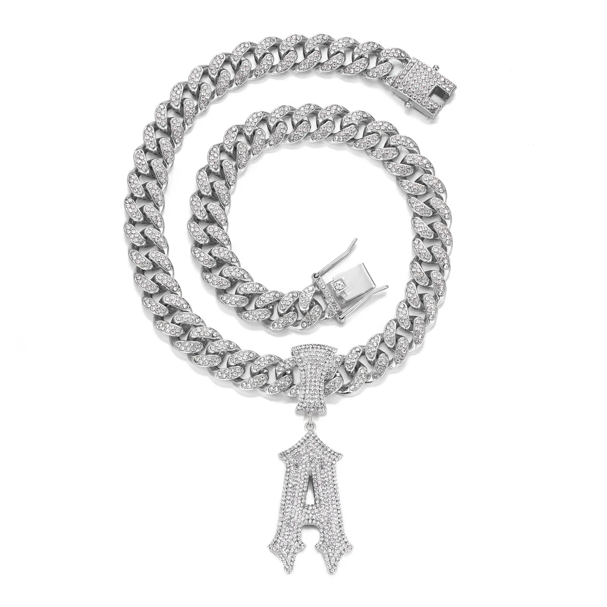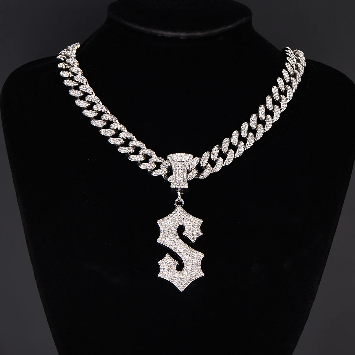 1pcs Hip Hop Full Rhinestone Shiny "A,S"Letter necklace with Ice Out 15MM Cuban chain for men and women Gifts for rappers