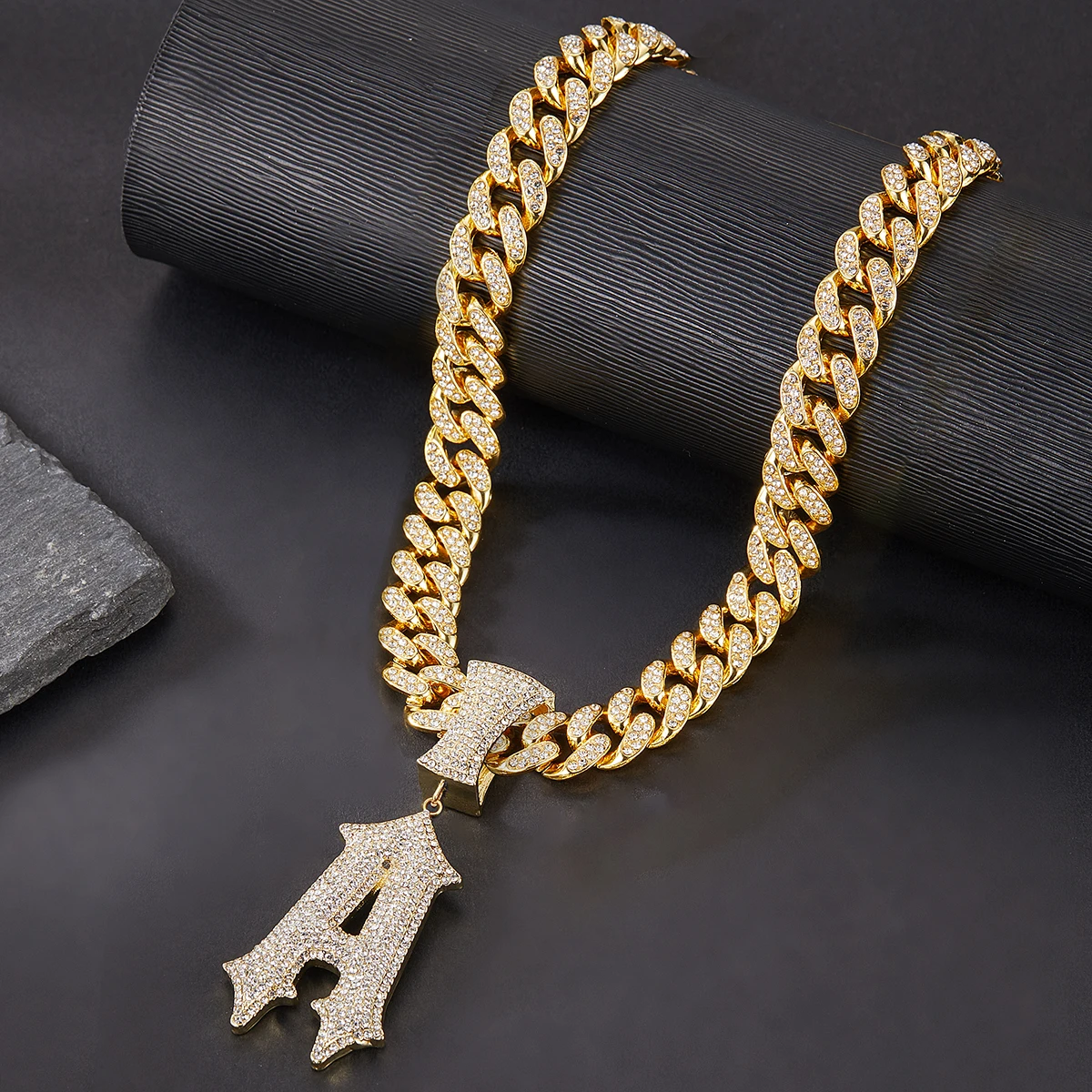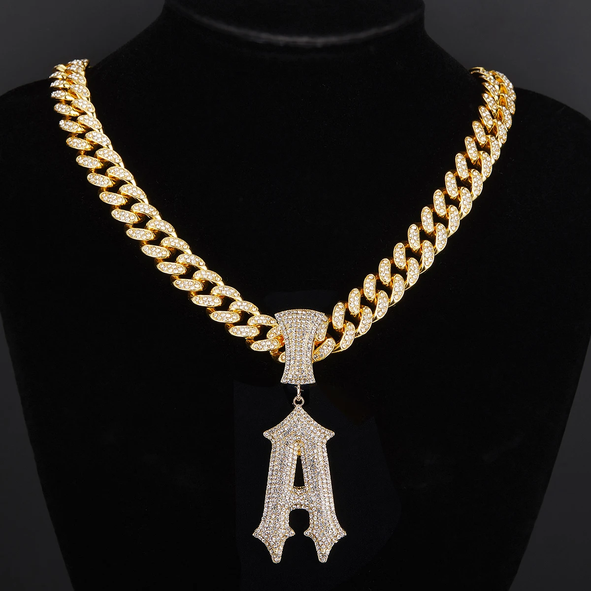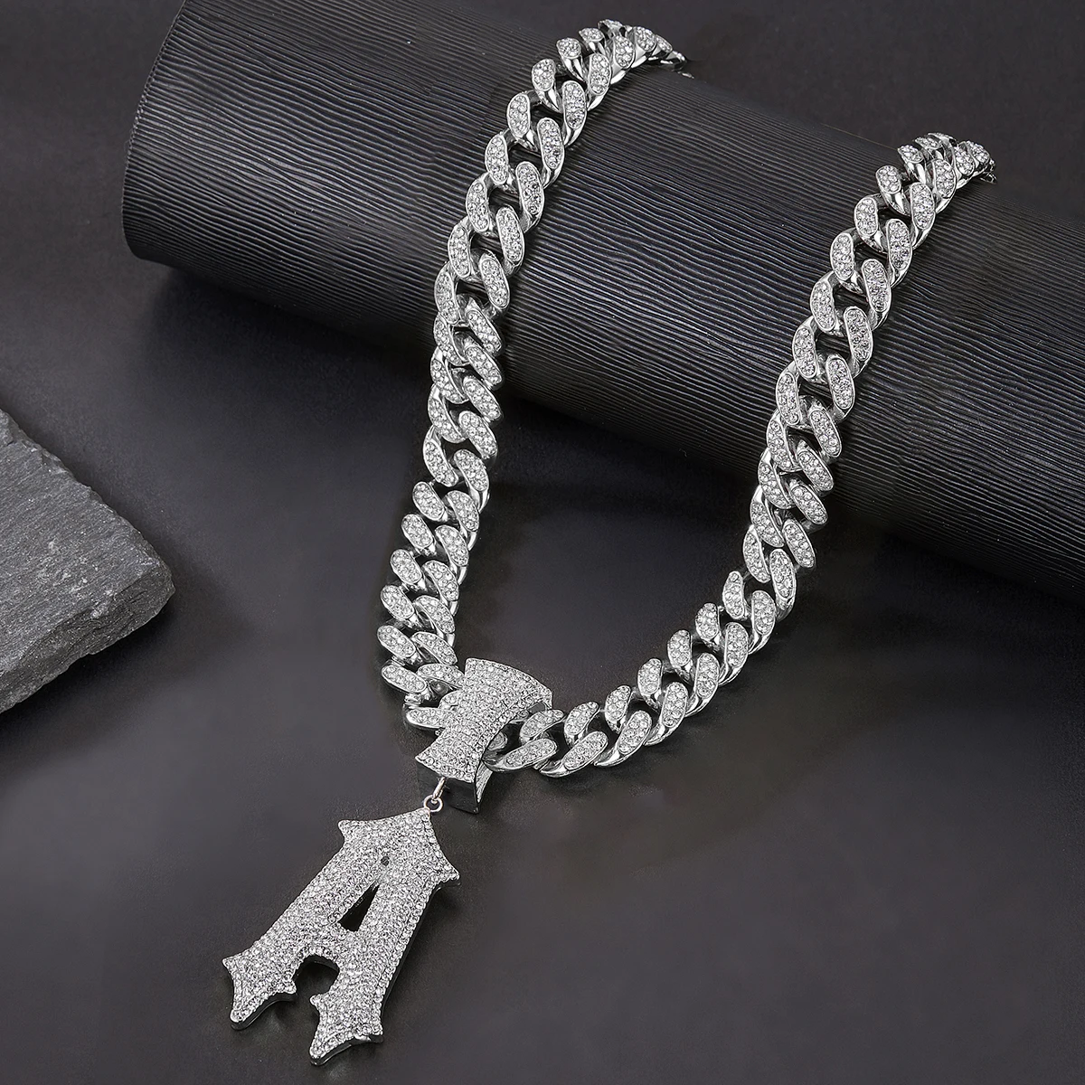 1pcs Hip Hop Full Rhinestone Shiny "A,S"Letter necklace with Ice Out 15MM Cuban chain for men and women Gifts for rappers