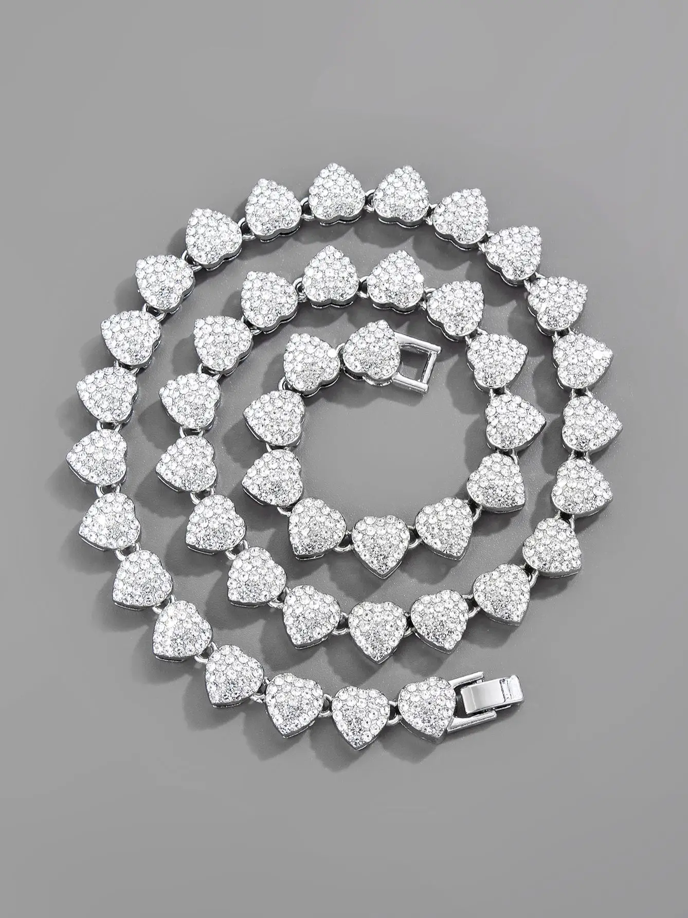 Full rhinestones a row heart-shaped Cuban chain fashion charming jewelry men and women