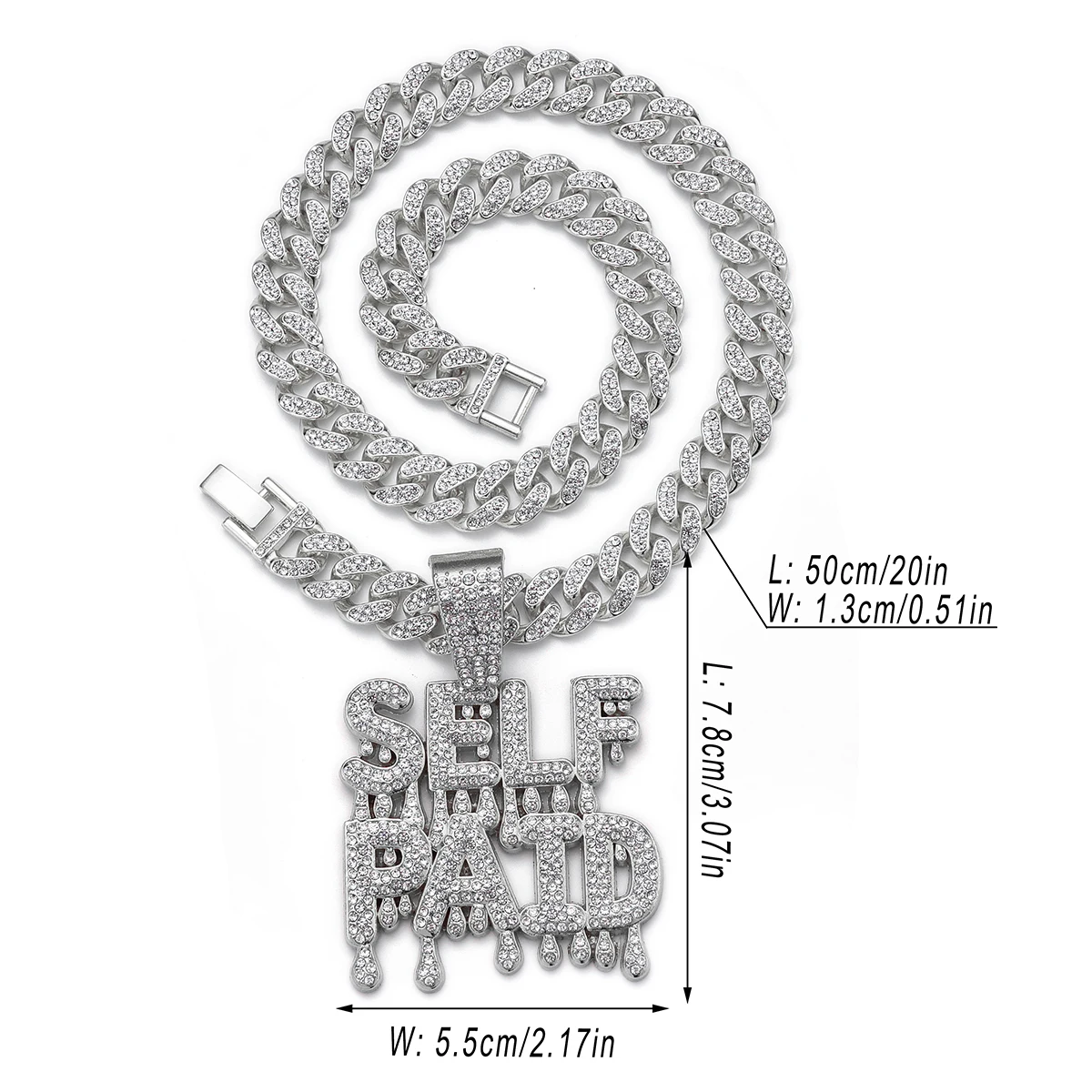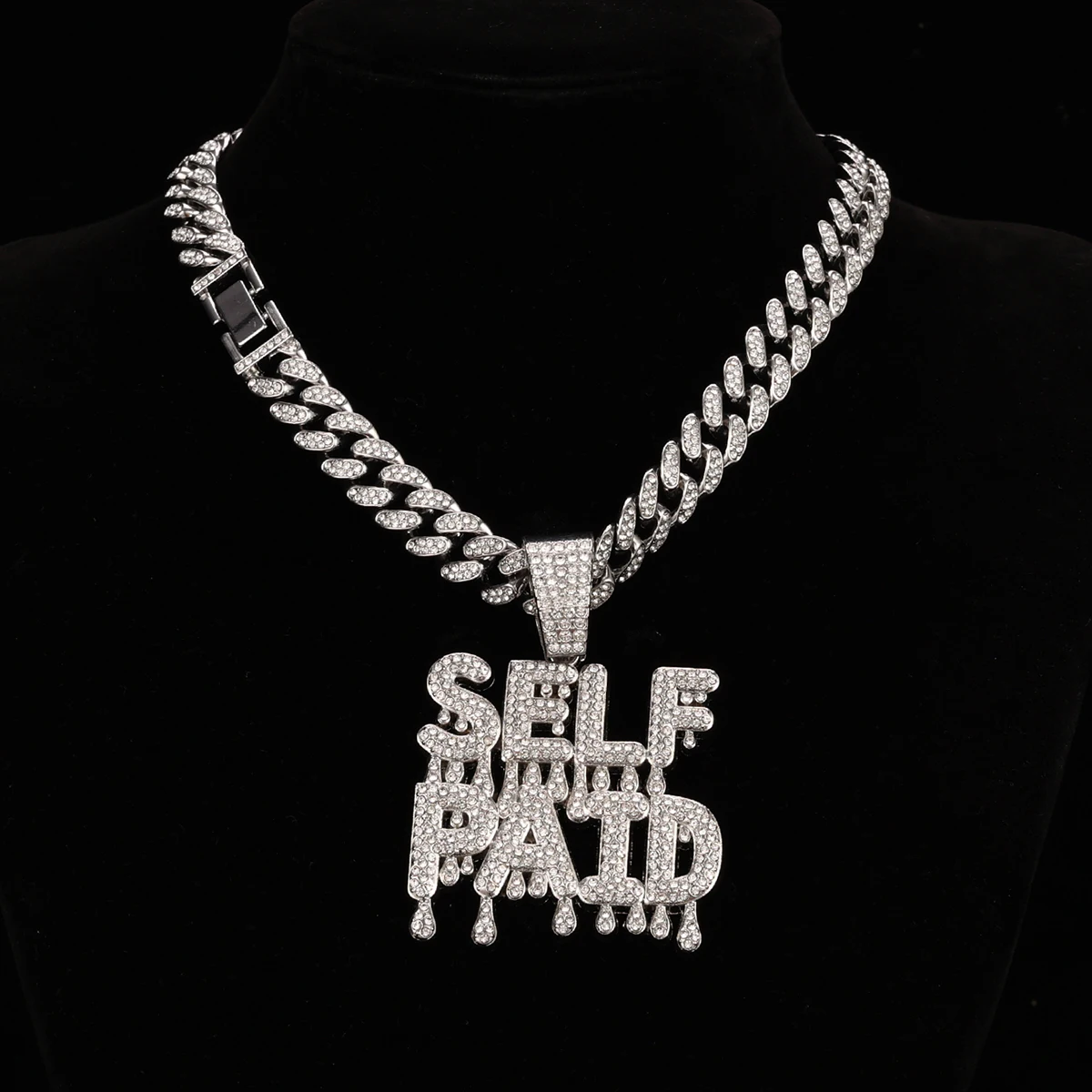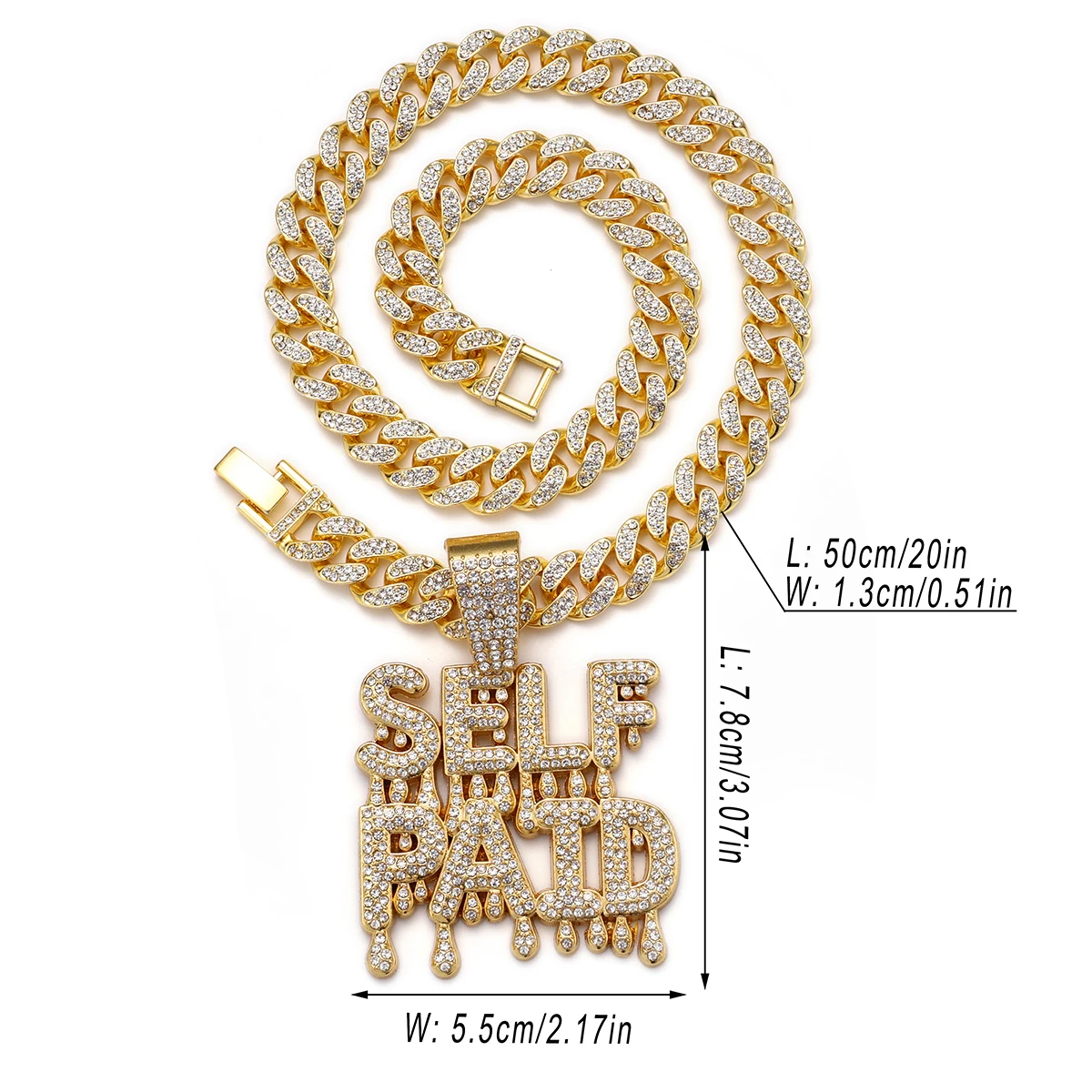 Glitter Unisex Hip-hop Letter SELFPAID Pendant Punk Cuban Necklace with Rhinestones for Women and Girls - Stylish