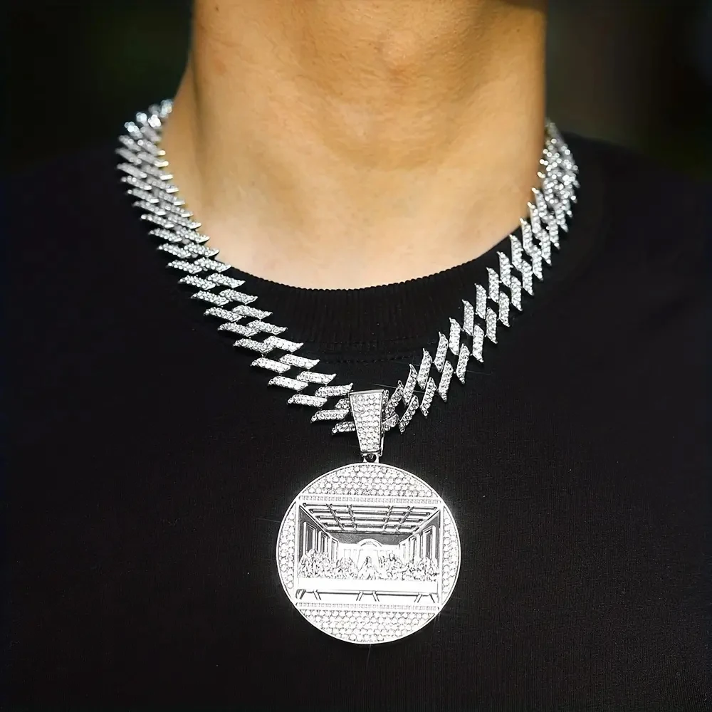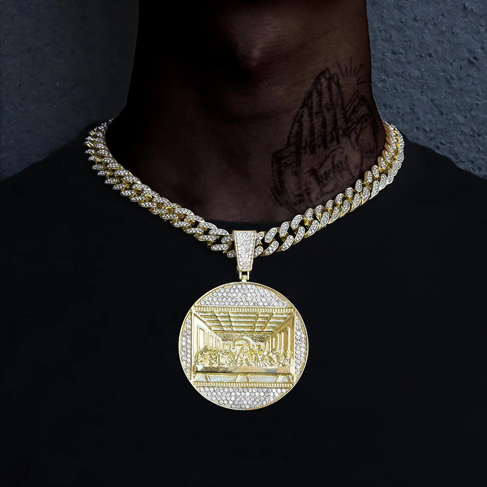 Hip Hop Last Supper Pendant Necklace Iced out Jesus Religious Pendant Cuban Chain Rapper Jewelry for Men and Women Gifts