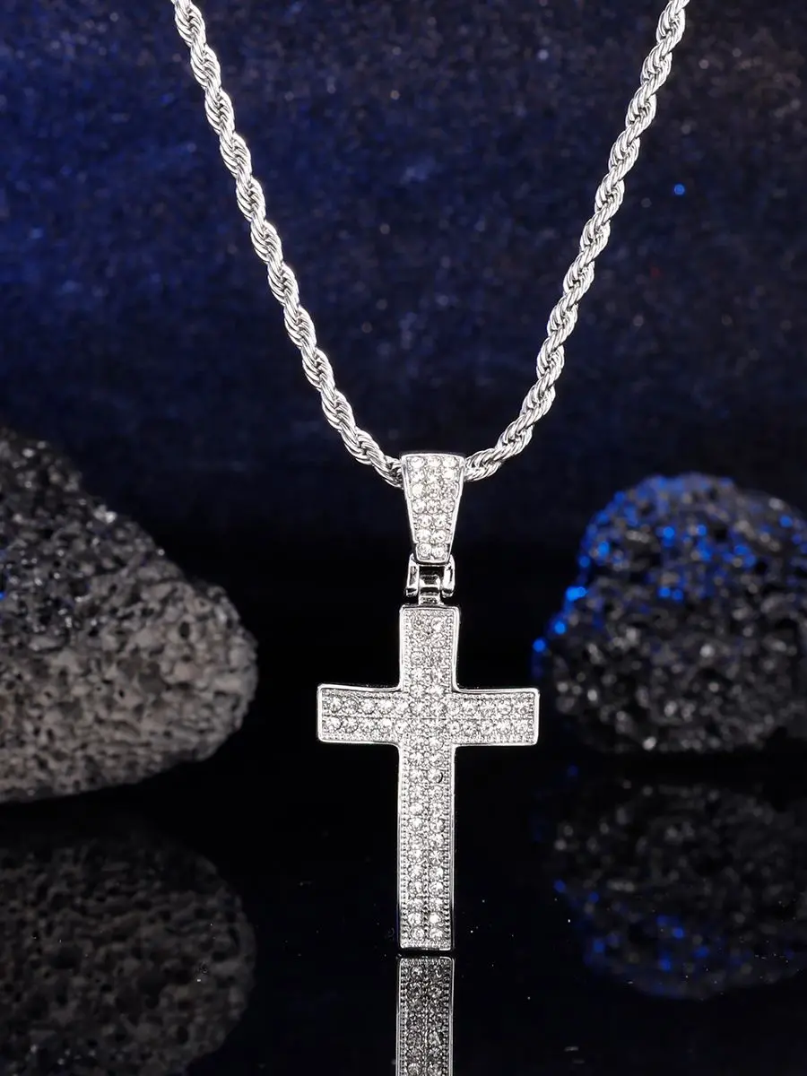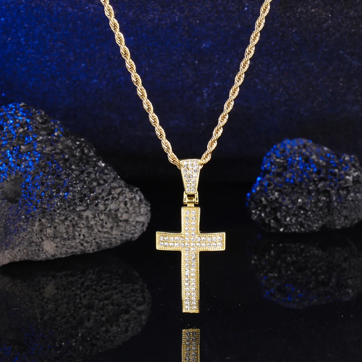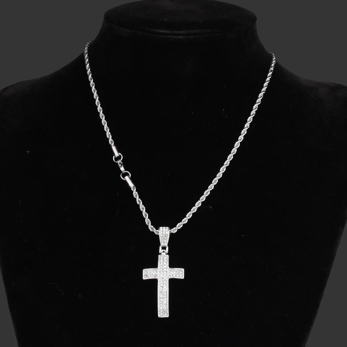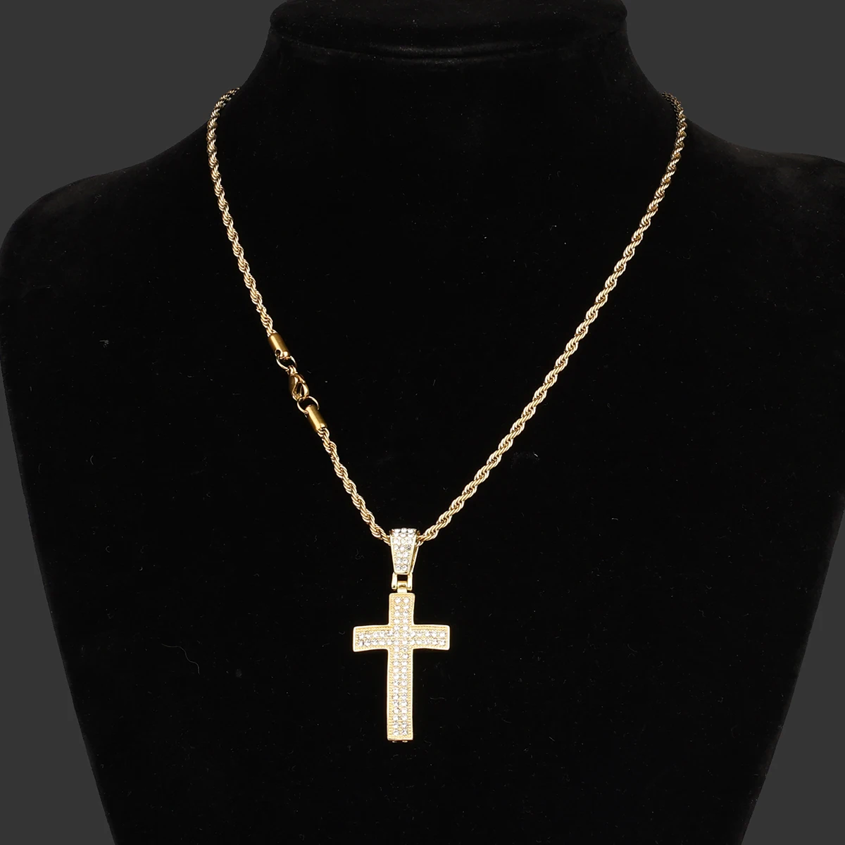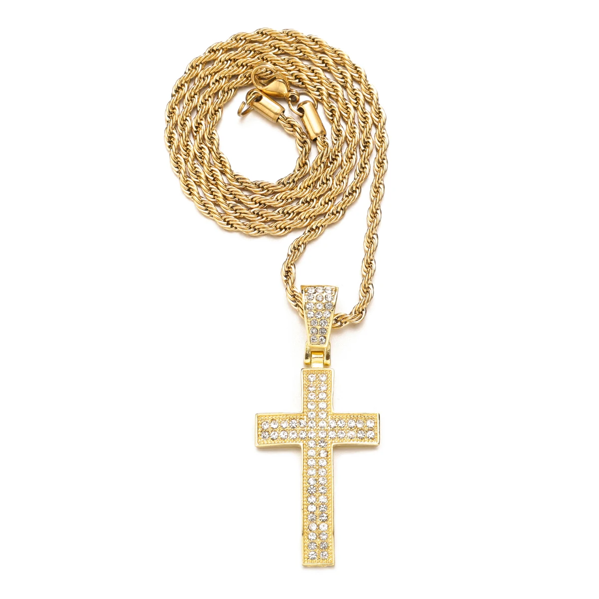 Men full of rhinestones Hip hop cross pendant Bling pop religious necklace with stainless steel chain
