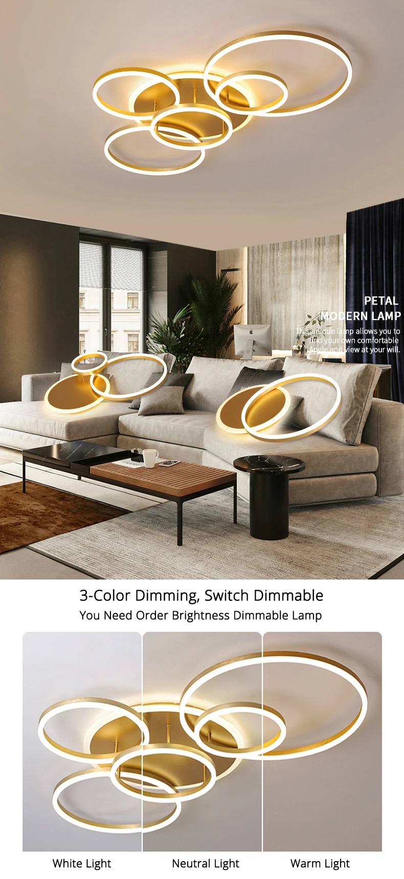 Modern LED Ceiling Chandelier Lighting Living Room Bedroom Dimmable Home Gold Black Indoor Lighting Decorative Light Fixtures