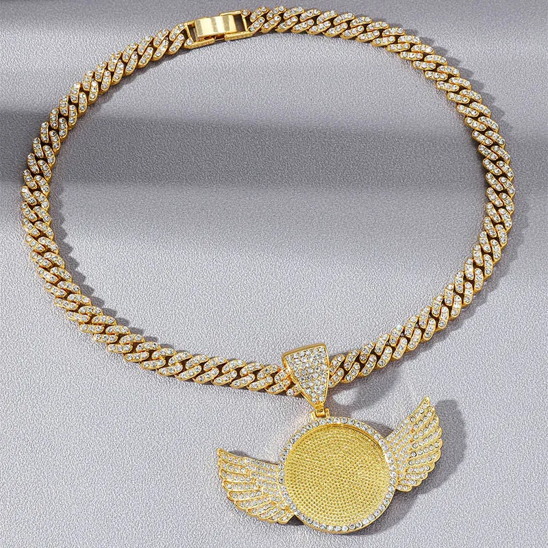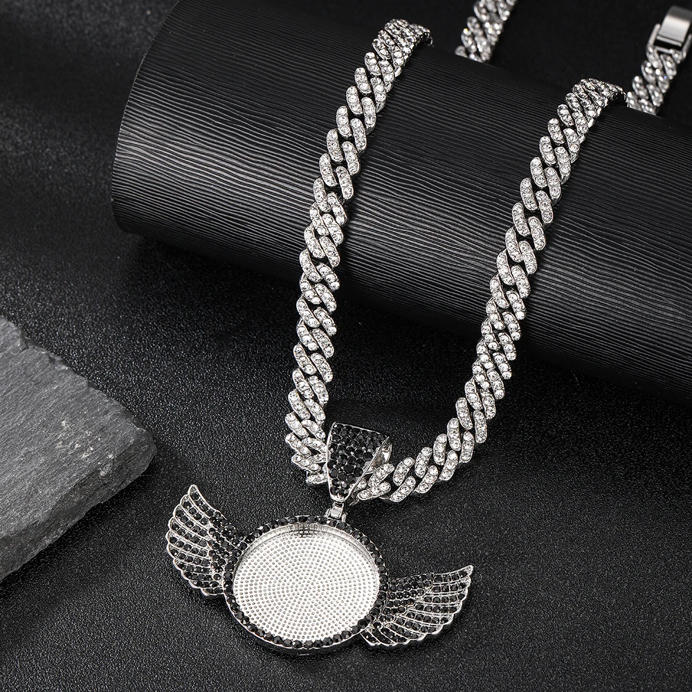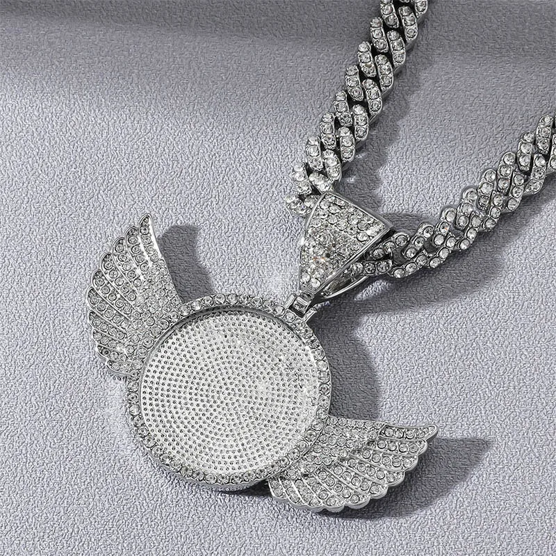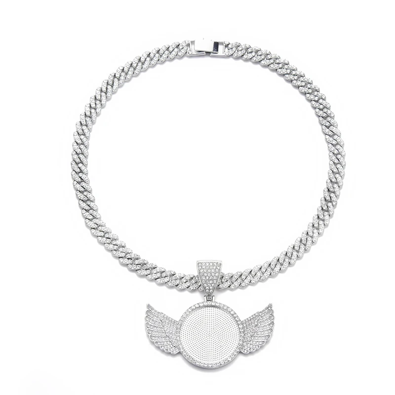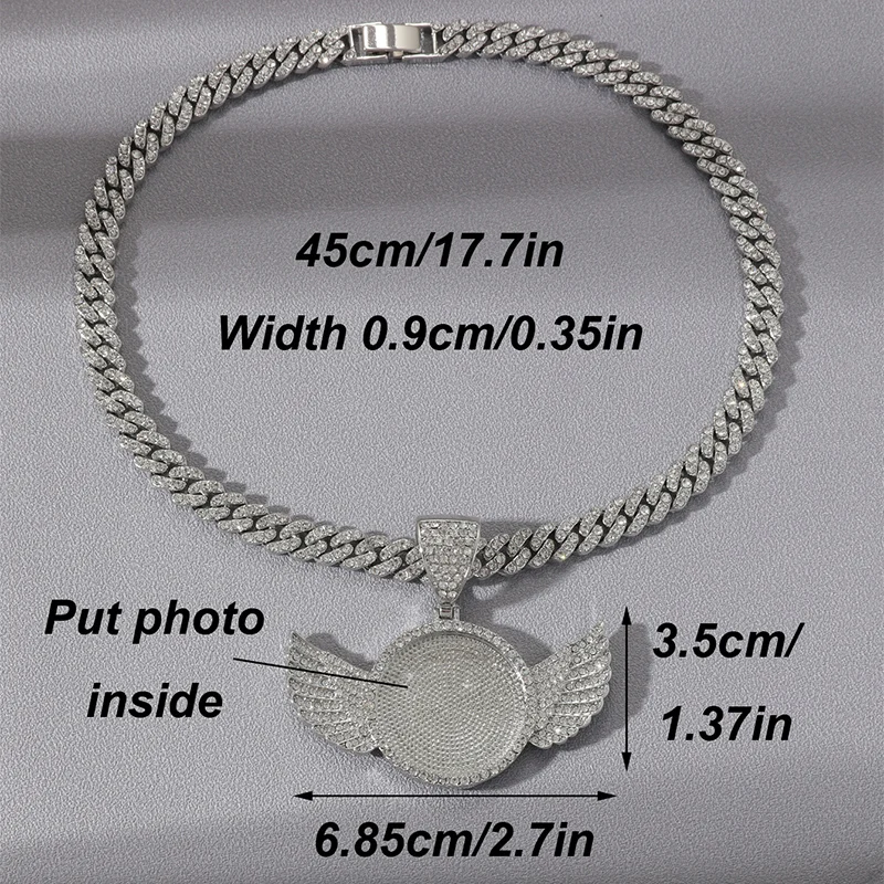 Picture frame Necklace Personalized for Men Women, CZ Angel Wings/Heart/Medallion Customized Photo Memory Pendant Chain 18 Inch